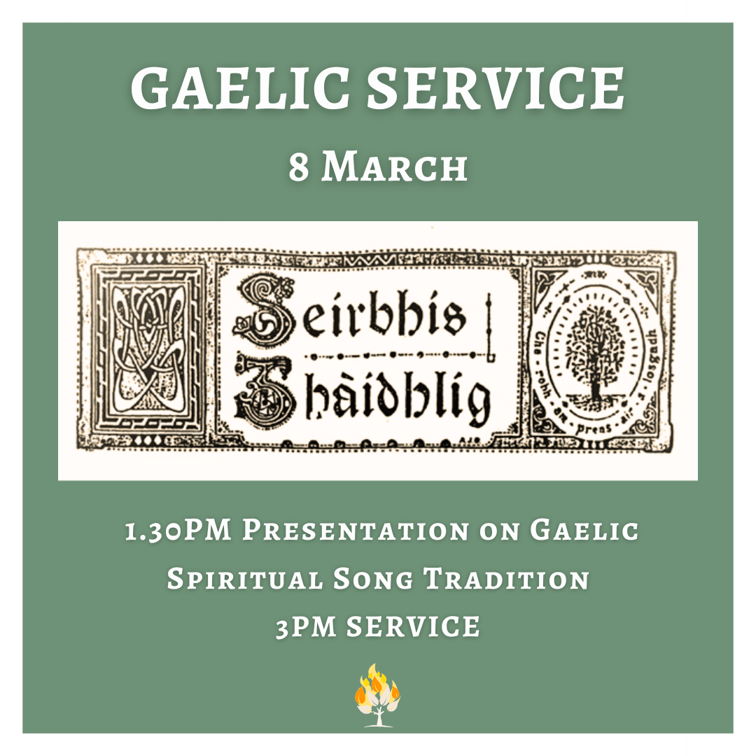 Please join us for our quarterly Gaelic Service led by Revd Dr Angus Morrison